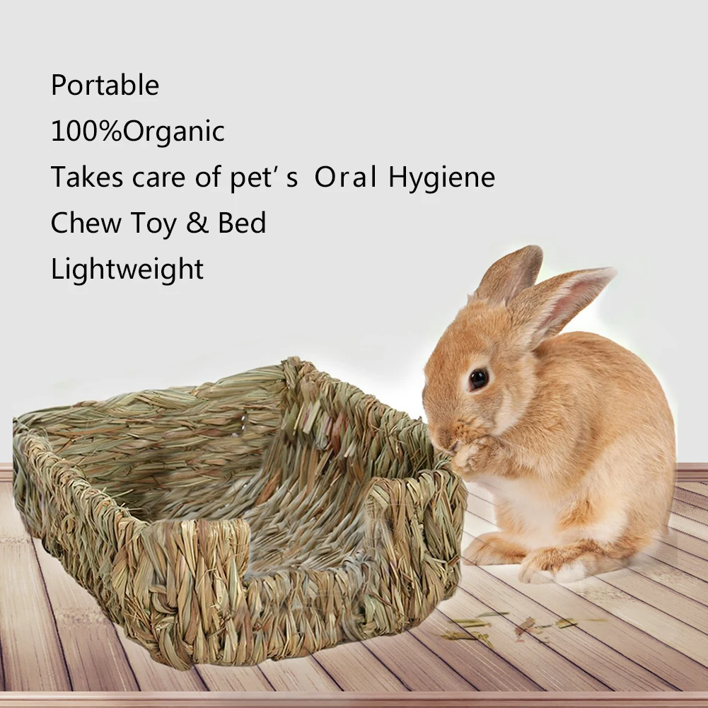 Natural Grass Hamster Bed Mat Rabbit Grass Mat Nest Cage Safe Chew Toy For Guinea Pig Rabbit Woven Bed Pets House Pet Supply